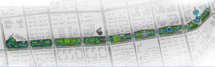 該項目打造了集景觀、娛樂、公共開放空間、城市雨洪滯蓄與行泄通道等綜合功能的下凹式水系景觀公園。