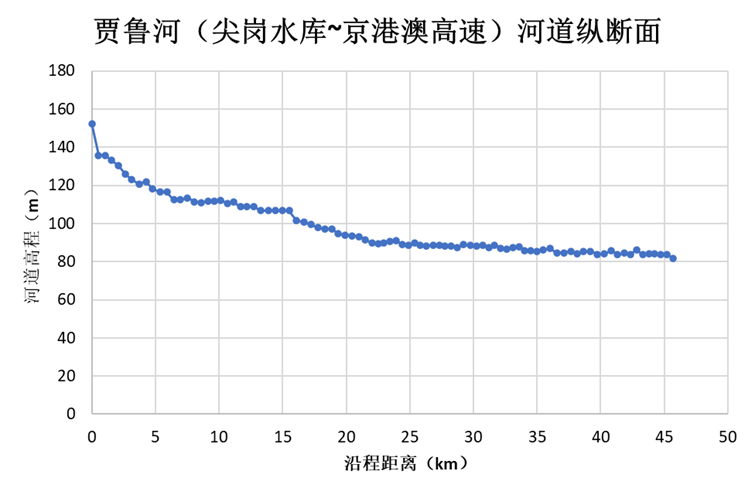 圖 2 賈魯河(尖崗水庫(kù)-京港澳高速)河道縱斷面沿線高程(m)