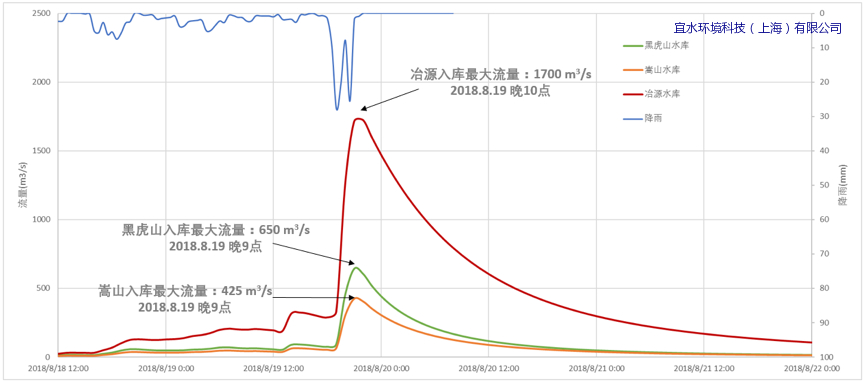 冶源、黑虎山、嵩山819暴雨入庫(kù)流量模擬成果圖