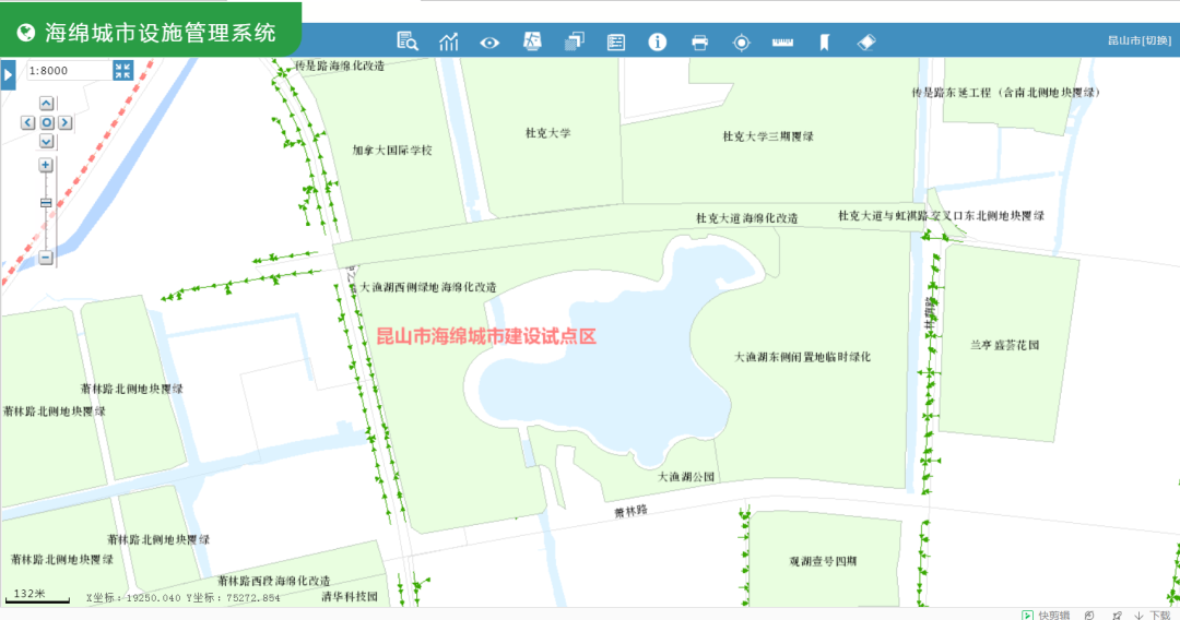 昆山市海綿城市建設(shè)試點(diǎn)區(qū)內(nèi)海綿建設(shè)項(xiàng)目包括建筑與小區(qū)項(xiàng)目、公園綠地及覆綠項(xiàng)目、道路廣場(chǎng)項(xiàng)目、水系項(xiàng)目四大類,共計(jì)157項(xiàng)。監(jiān)測(cè)管理平臺(tái)實(shí)現(xiàn)了試點(diǎn)區(qū)項(xiàng)目全覆蓋,實(shí)時(shí)更新項(xiàng)目進(jìn)展,實(shí)行包括項(xiàng)目的前期準(zhǔn)備、施工過程、竣工驗(yàn)收、維護(hù)管理等在內(nèi)的全生命周期管理。