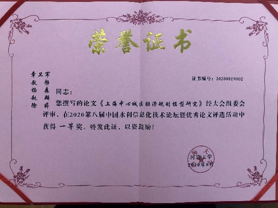 以宜水環(huán)境總經(jīng)理章衛(wèi)軍為首的5人撰寫的《上海中心城區(qū)排澇規(guī)劃模型研究》和宜水環(huán)境項(xiàng)目總監(jiān)何文撰寫的《流域單元的水系綜合治理——以寧波海綿試點(diǎn)區(qū)為例》經(jīng)大會(huì)組委會(huì)推薦、《水資源保護(hù)》編輯部組織專家評(píng)審,被評(píng)為優(yōu)秀論文,分別獲得一等獎(jiǎng)和三等獎(jiǎng)。